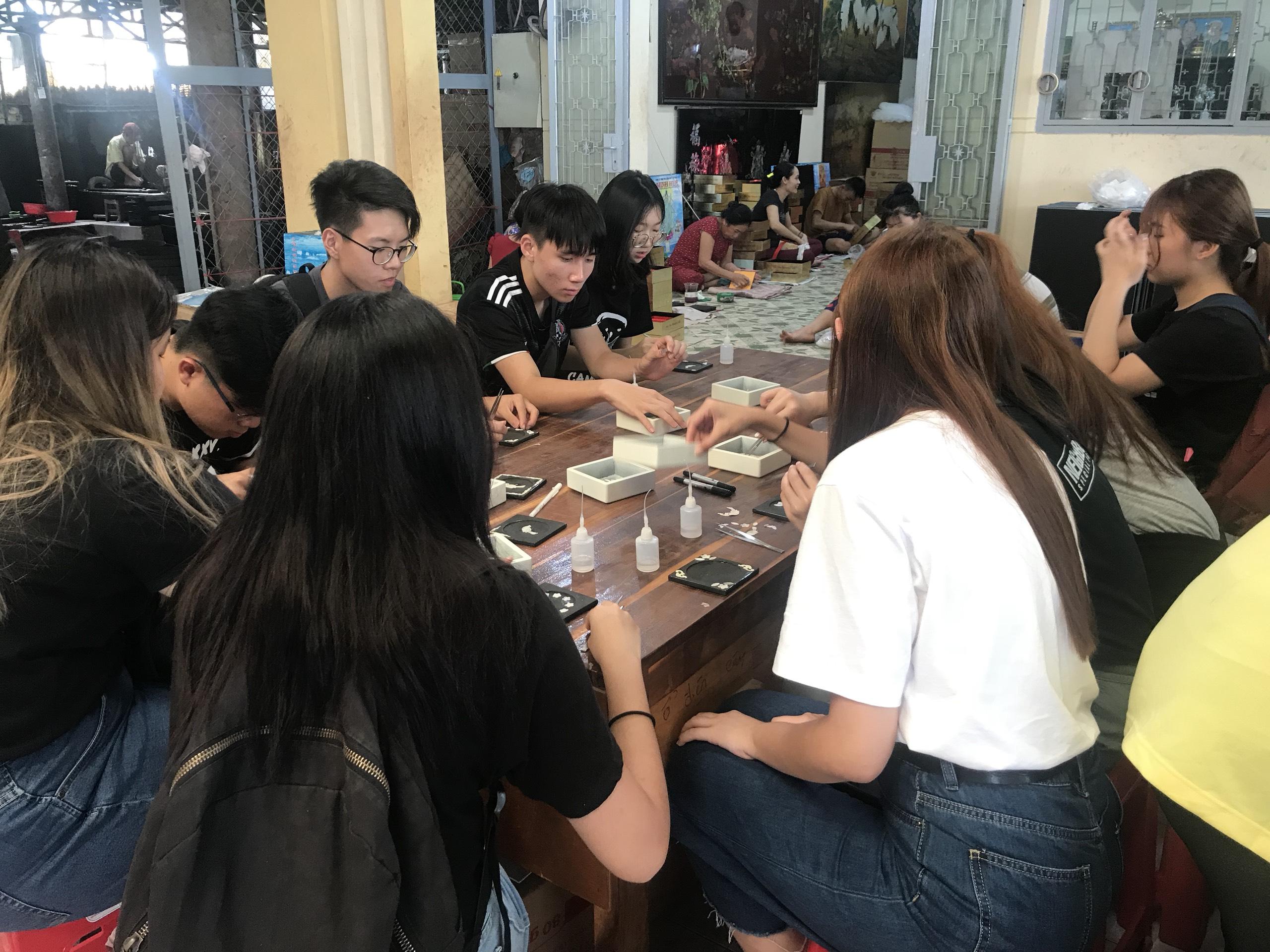 Sinh viên Singapore đến tham quan xưởng Tư Bốn và thực hành sơn mài - Đợt 2